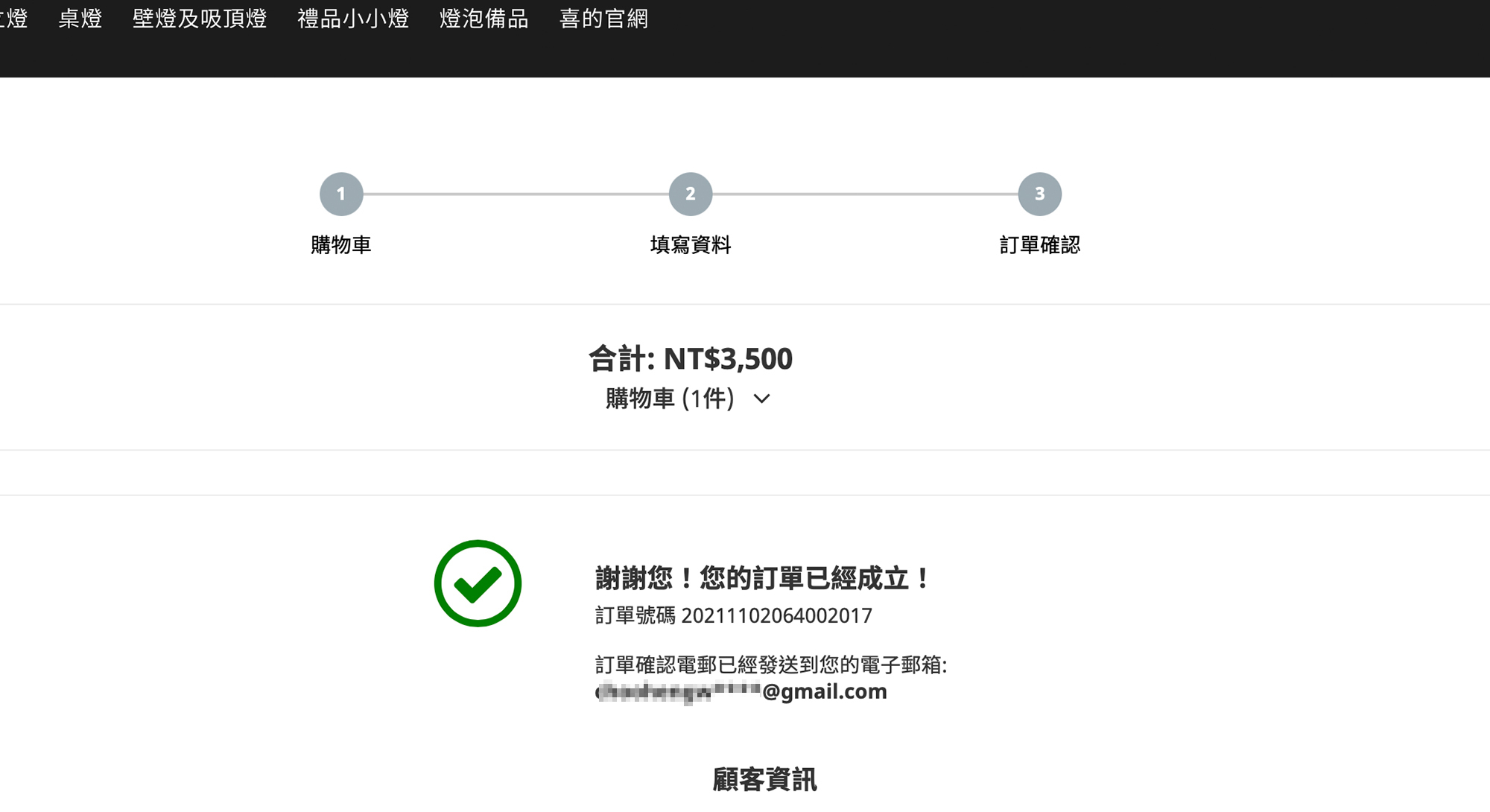 恭喜完成訂單!請稍後幾天,您選購的燈飾會儘速送到指定地點。