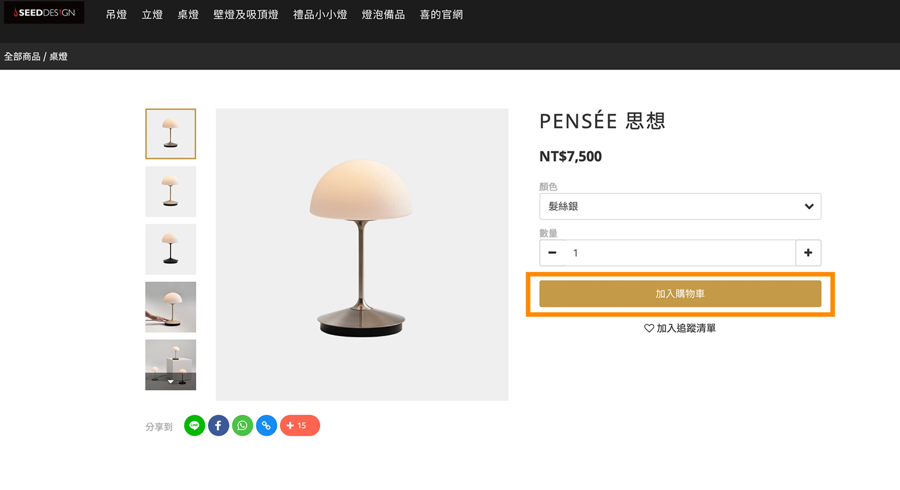 確認喜歡的品項、顏色、數量,點選「加入購物車」。