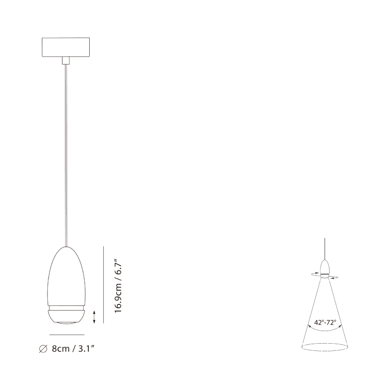 極簡乾淨的外型下藏有聰明的內涵,透過「雙螺旋」機械原理調整「變焦透鏡」,賦予光的多變能力:調整照射角度、範圍與光強度。優異的變焦功能適應多元使用情境,旋上:光束角大、光氛柔和舒適;旋下:光束角小、聚焦的光捕捉視覺重點。