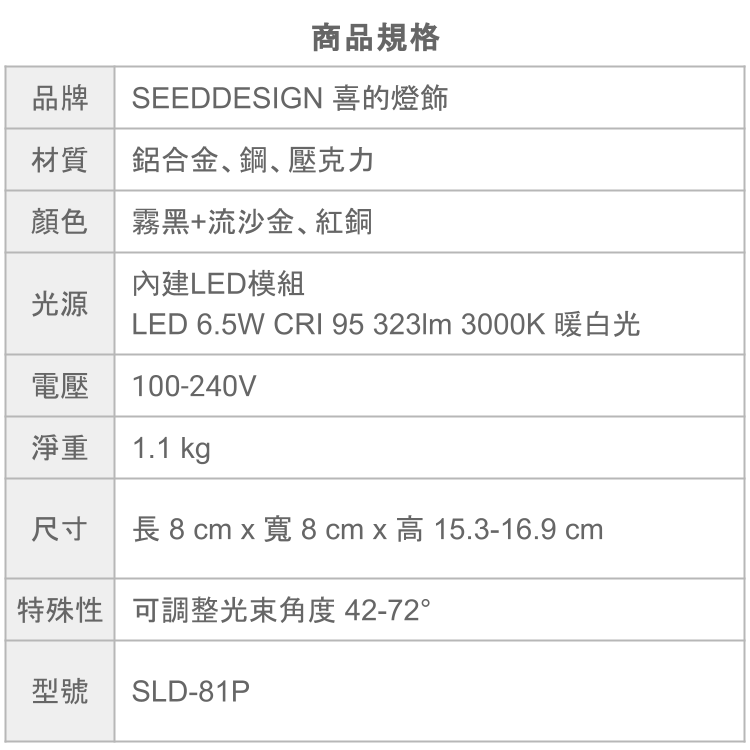 特殊性 可調整光束角度 42-72°
