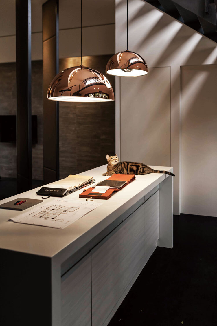 穹頂的半圓型燈罩宛如天空的一隅,簡潔而深邃,耀眼的光芒在一圈一圈遞迭的同心圓鋁反射罩上層層漫開,化為蒼穹般溫潤的光暈;可高低調節的燈泡遮蓋,除了讓出光量多了點彈性,更體貼地遮去刺眼的光線,為空間注入安定與平和,讓每一個夜晚都被溫柔擁抱。