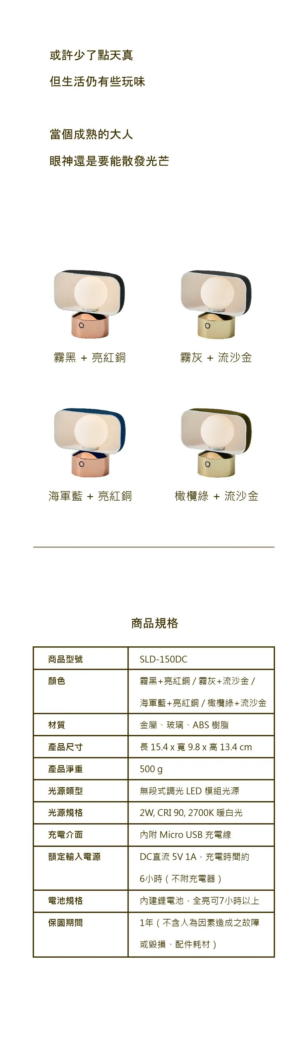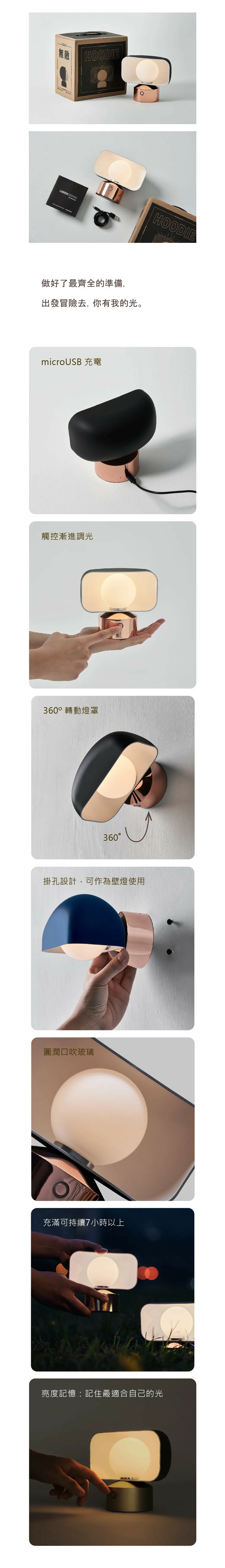 漸進調光和可轉動燈罩細膩量身,白玉玻璃透徹如心,光滑內烤漆的光也均勻無暇。因應租屋現代需求,無敵的招式不只一種,可做為桌燈、也可掛於牆面作為壁燈,透過mini USB 充滿電力後,亦可隨身攜帶。