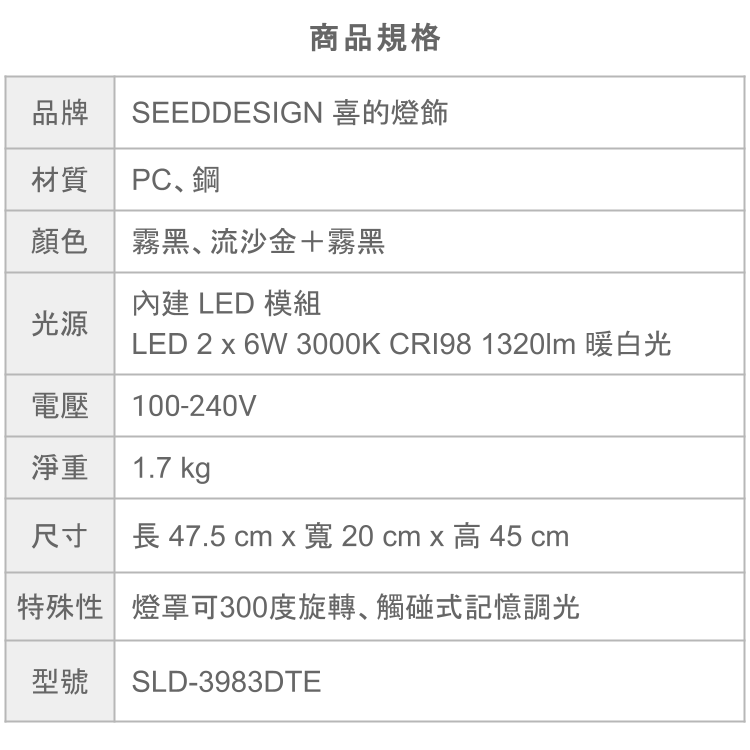 光源 LED 2 x 6W 3000K CRI98 1320 lm 暖白光