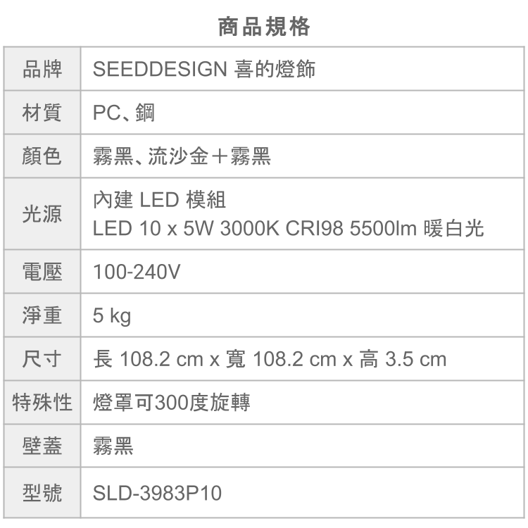 光源 LED 10 x 5W 3000K CRI98 5500 lm 暖白光