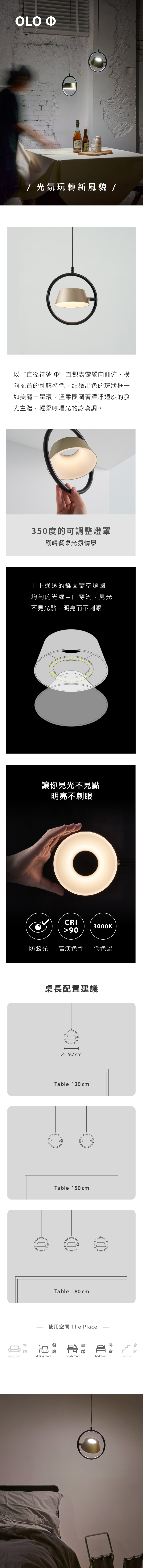 OLO 光氛符碼添加新元素「直徑符號 Φ」,直觀地以符號外形表露其縱向仰俯、橫向擺首的翻轉特色,展現面面俱到的全方位光向。細緻出色的環狀與U型框,一如美麗天體的土星環,溫柔圈圍著漂浮迴旋的發光主體,且聽 OLO Φ 為人們輕柔吟唱屬於光的詠嘆調。