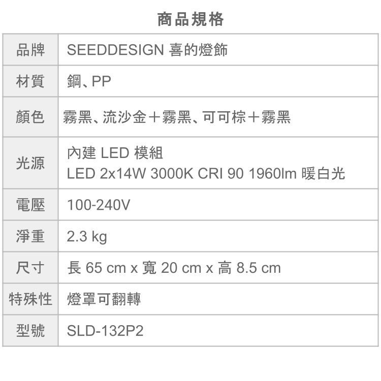 光源 LED 2x14W CRI 90 1960lm 3000K 暖白光