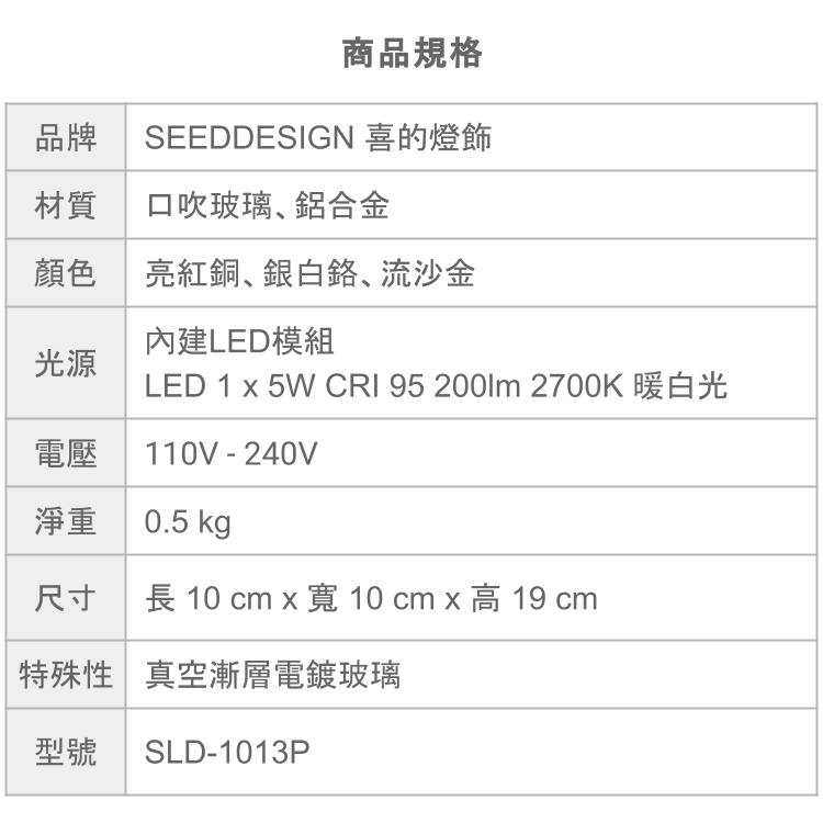 光源 LED 1 x 5W CRI 95 200lm 2700K 暖白光