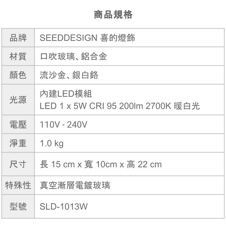 材質 口吹玻璃、鋁合金
