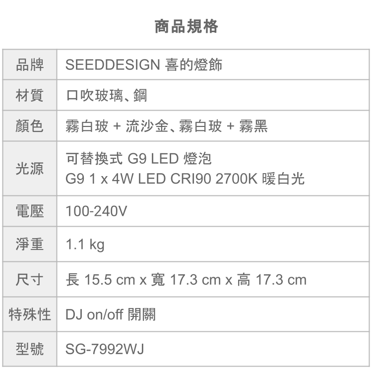 光源 可替換式 G9 LED 燈泡 1 x 4W LED 2700K 暖白光(隨燈附贈 )