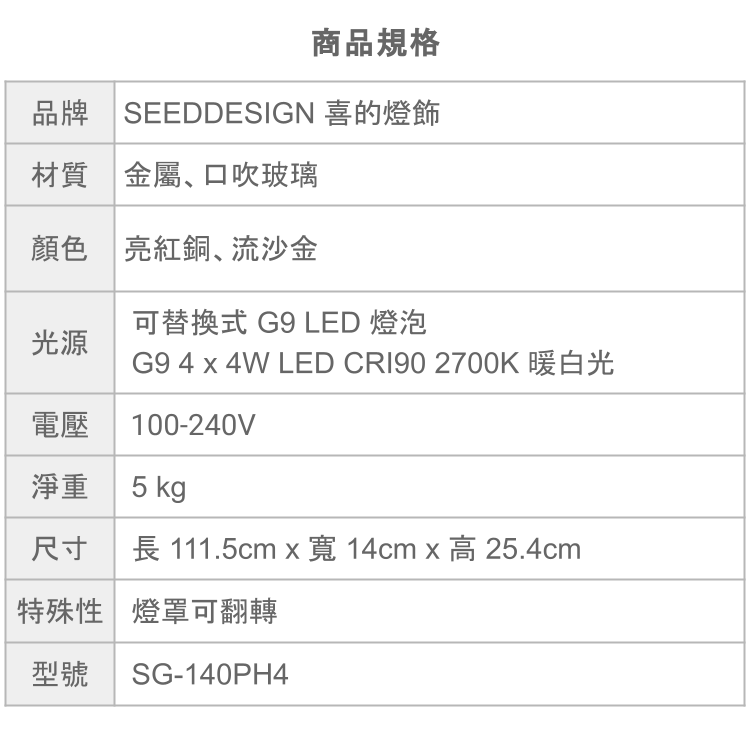 光源 G9 4 x 4W LED CRI90 2700K 暖白光