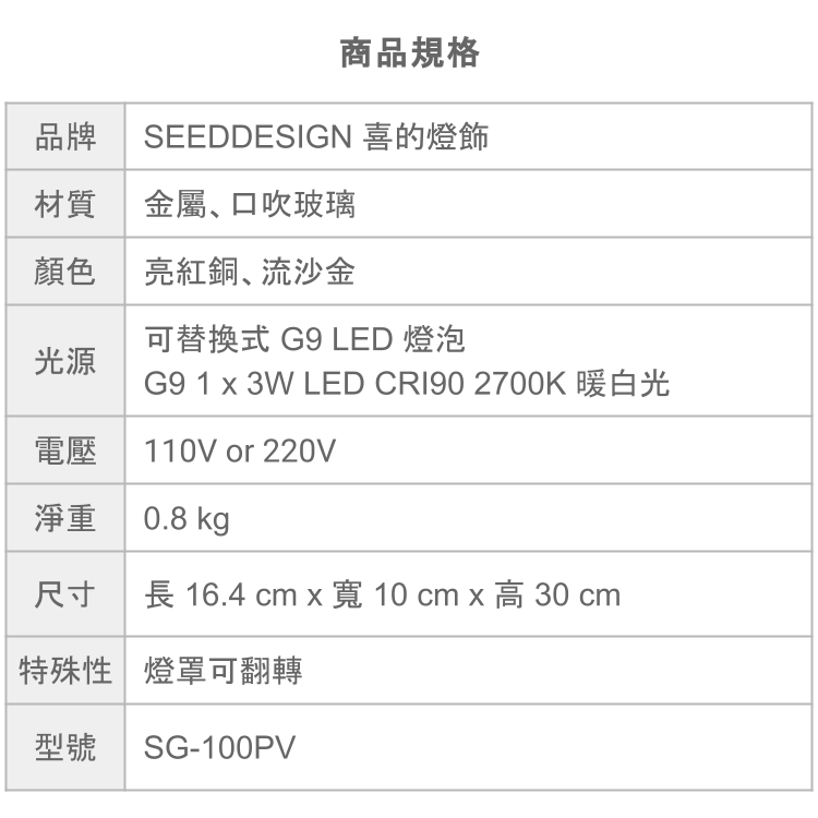 光源 G9 1 x 3W LED CRI90 2700K 暖白光