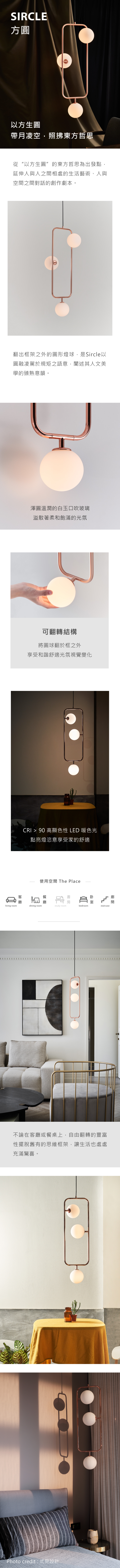 翻出框架之外的圓形燈球,是Sircle以圓融凌駕於規矩之語意,闡述其人文美學的臻熟意韻。平衡穩實的可翻轉結構,營造舒心和諧的視覺變化,透過渾圓溫潤的白玉玻璃,如呼之欲出的暖月光輝,灑溢遍地人情美好。