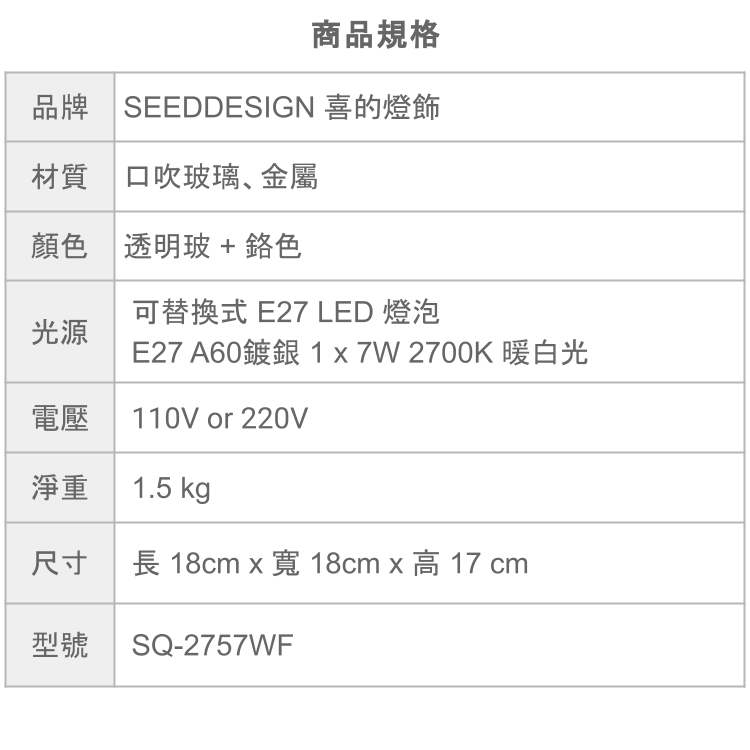 光源 E27 A60鍍銀 1 x 7W 2700K 暖白光