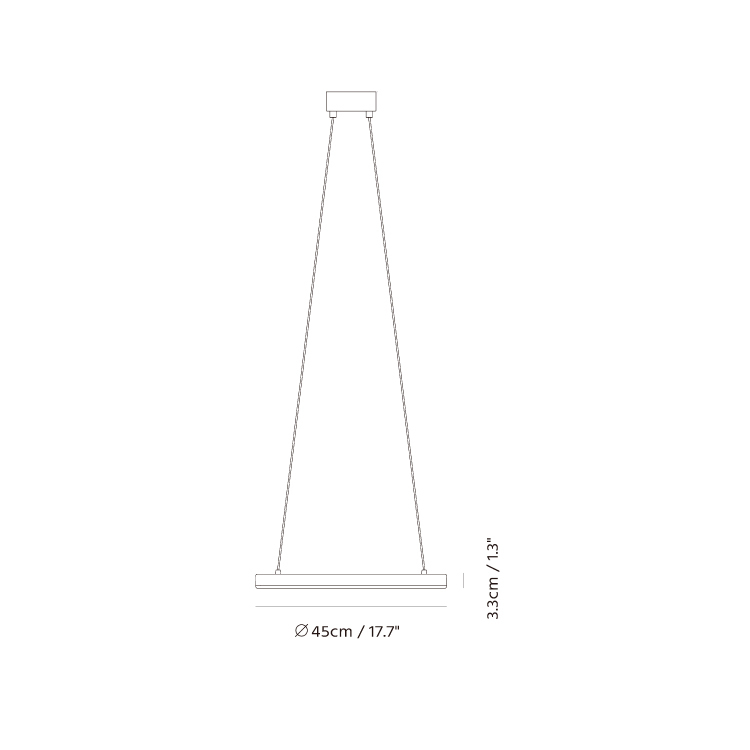 以「日恆」為名,沿著天體繞行劃留出炫目的環形光軌,橫渡其中的金屬電鍍平衡桿,象徵著區分白天夜晚的時光交接。高掛半空的SOL 一如星系中的行星翻轉,以恆星為中心自由調整傾斜角度,大大小小的燈體錯綜排列,倏忽想起星象圖浩瀚無際的未知感受。