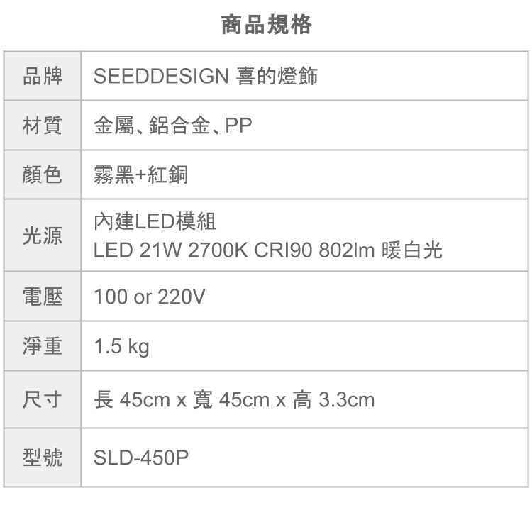 光源 LED 21W 2700K CRI90 802lm 暖白光