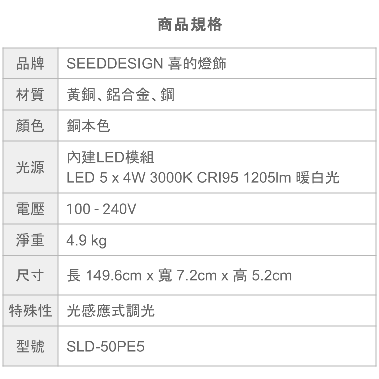 特殊性 光感應式調光、光束角60度,燈罩可360度旋轉