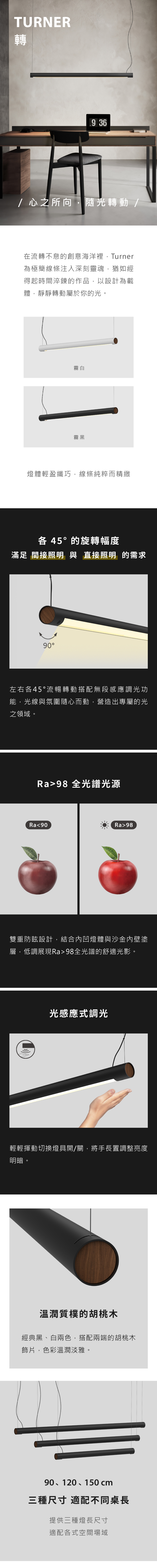 在流轉不息的創意海洋裡,Turner 為極簡線條注入深刻靈魂,猶如經得起時間淬鍊的作品,以設計為載體,靜靜轉動屬於你的光。