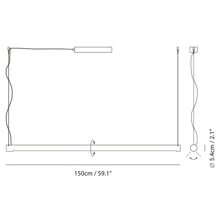 經典黑、白兩色,搭配兩端的胡桃木飾片,色彩溫潤淡雅,提供 90、120、150 cm三種燈長尺寸,適配各式空間場域。