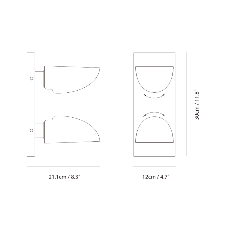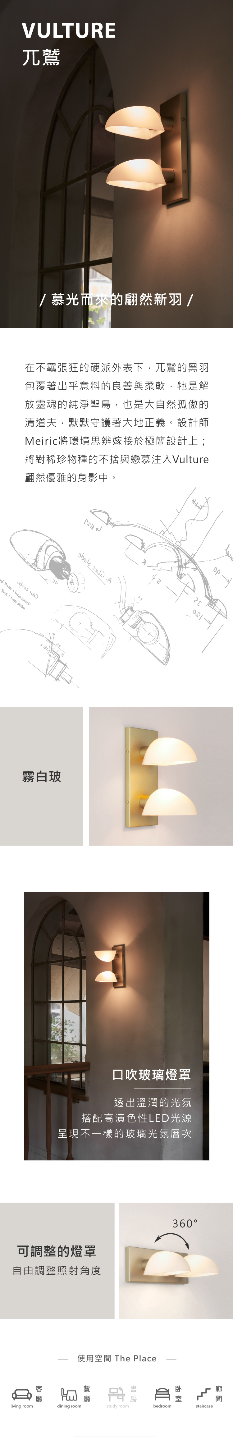 雙壁燈設計為空間注入更充足的光源,上下投射的光線亦營造出豐富的視覺層次。特別適用於垂直立面場域,如玄關牆面、階梯轉角或長廊走道,靜靜塑造空間氛圍。