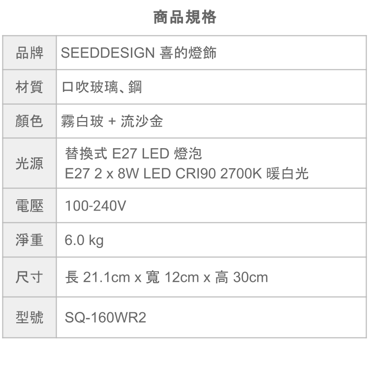 光源 E27 2 x 8W LED CRI90 2700K 暖白光